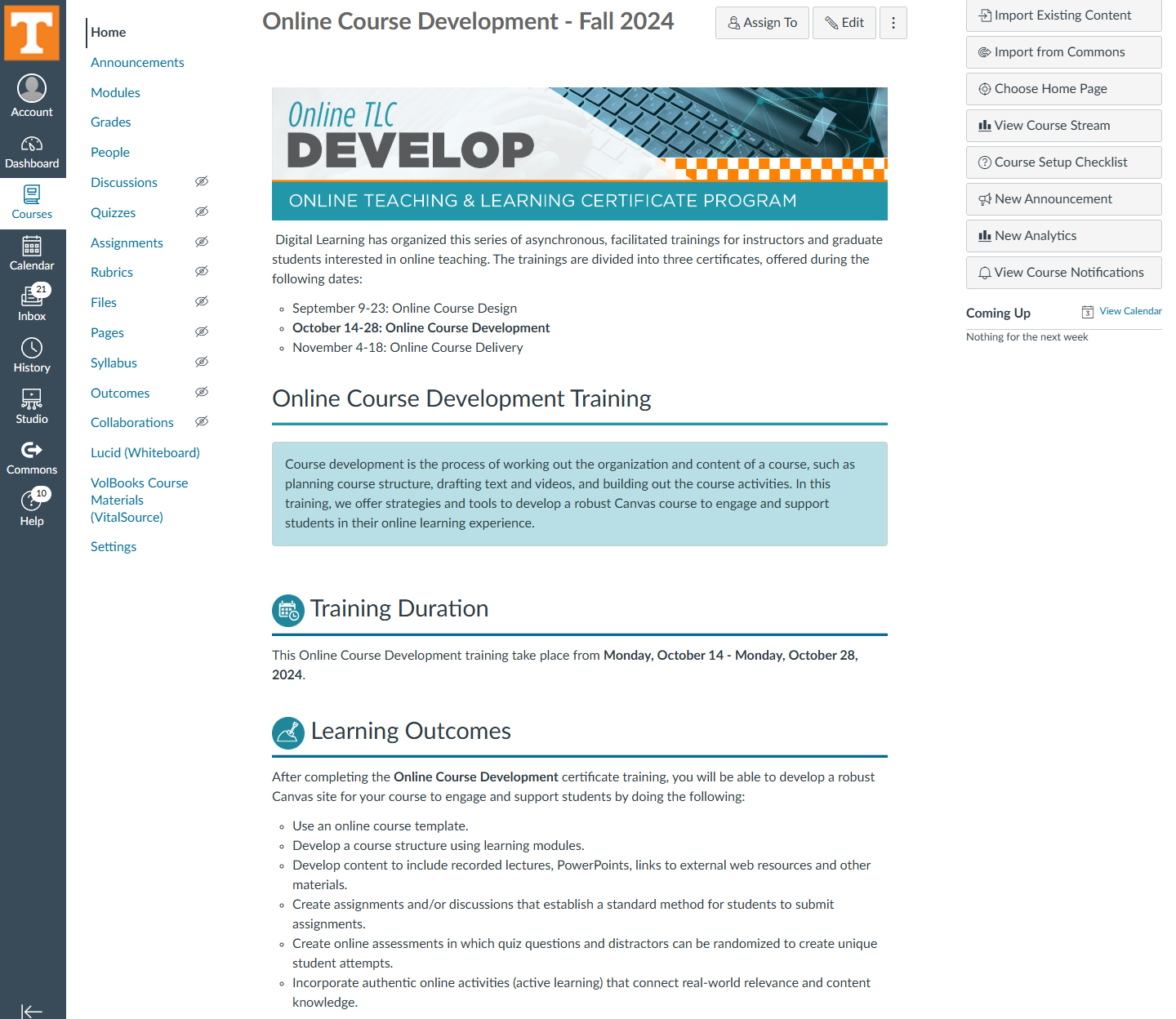 As a Research Assistant (RA) at UTK Digital Learning, I actively supported faculty professional development programs that aimed to enhance the quality of online teaching and learning. Among these, I contributed as a Teaching Assistant (TA) for the Online Teaching & Learning Certificate Program, which included the Online Course Development training module.